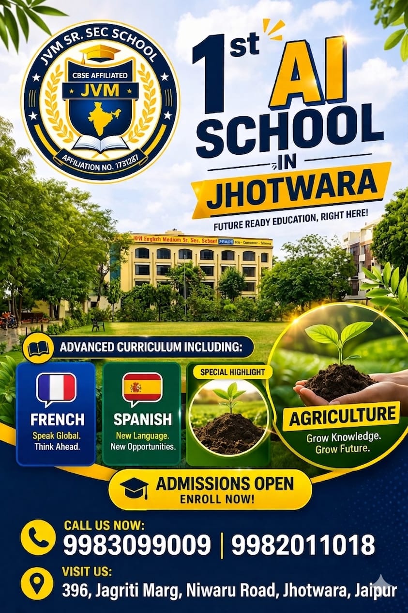 JVM Senior Secondary School stands proudly as one of the best schools in Jhotwara, Jaipur, offering a transformative learning experience for students. Renowned for its commitment to excellence, JVM Senior Secondary School has earned its reputation as one of the best schools in Jhotwara.